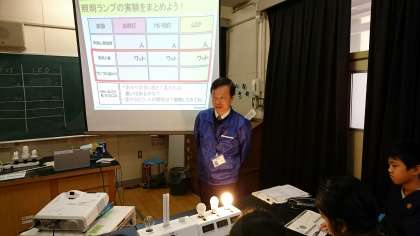 今日は、パナソニックの方に来ていただき、「あかりのエコ教室」の体験学習をしました。