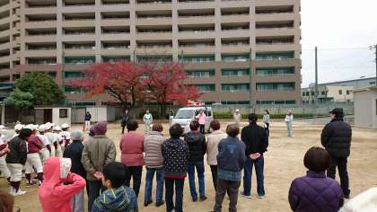 今日は、三軒家東小学校で、地域防災訓練を行っています。