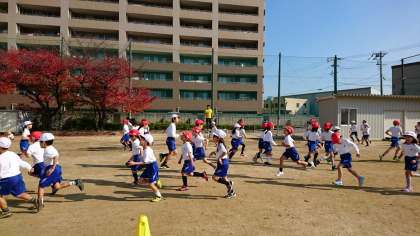 いいお天気で、みんな一生懸命走りました。がんばりカードに色を塗るのを楽しみにして、がんばりました。