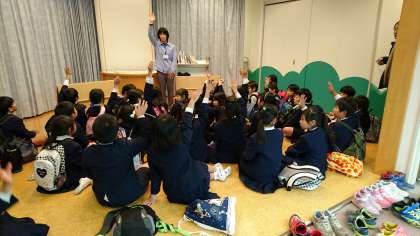 図書館での本の借り方、どんな本が置いてあるか等についてお話を聞きました。
