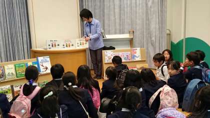 外国語で書かれた本、布でつくられた本、点字の本…等色々な種類の本を紹介していただきました。