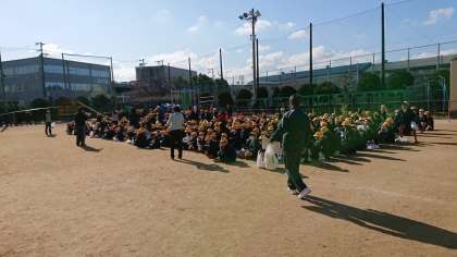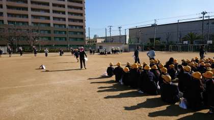 地震を想定した避難訓練を行いました。運動場に避難後、津波から逃れるために校舎の3階以上の教室に避難しました。前回より短時間で避難することができました。