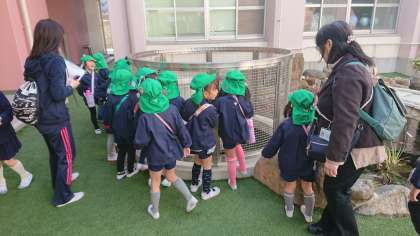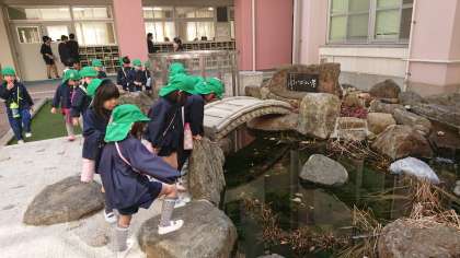 図書館の見学やのびのび広場の池でメダカの観察もしました。