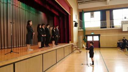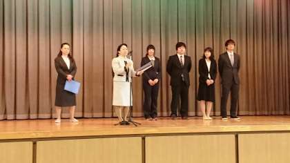 1学期が始まりました。まずは、転入生の紹介、離任された教職員の紹介と、着任式をしました。