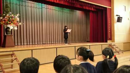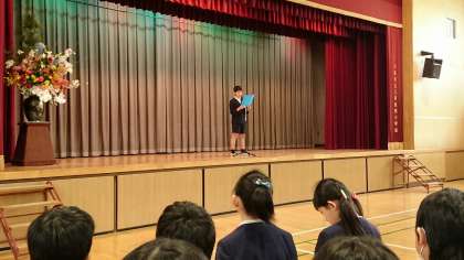次に、6年生の代表2名が、進級した喜びと、こんな1年にしたいという決意を語りました。