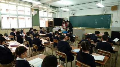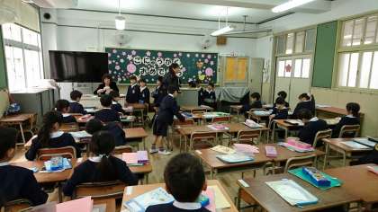 新しい学年の教室に入り、新しい教科書を配ってもらいました。