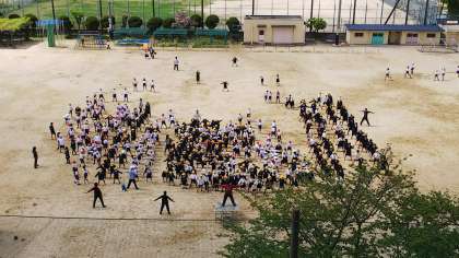 今日は、初めてだったので、並ぶ間隔が上手くとれなかったようです。しっかりとラジオ体操をすると、汗がにじみます。