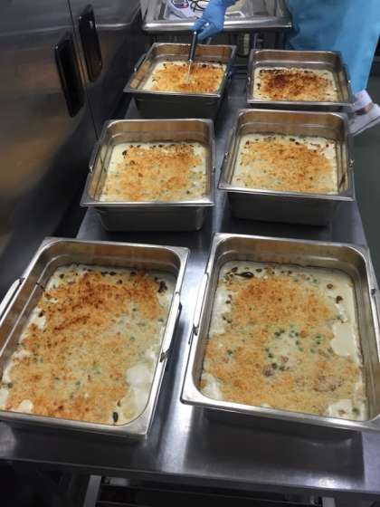 今日の給食では、鶏肉、マカロニが入った、マカロニグラタンが登場しています。