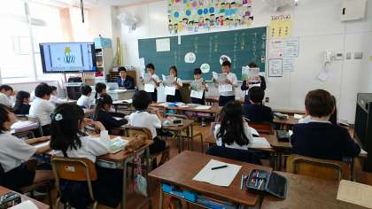3年生は、国語「すいせんのラッパ」の学習でした。