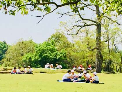 二月堂から移動して広々とした若草山で、お弁当タイムです。