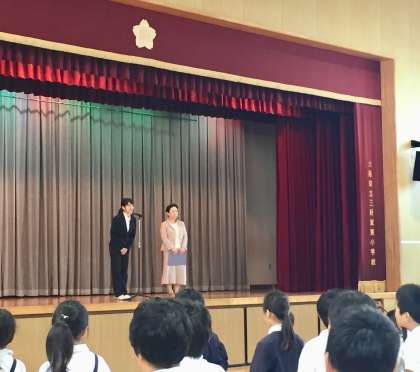 今日から6月8日(金)まで、大学生の高曲 沙季(たかまがり さき)さんが本校で教育実習をされます。本校の卒業生です。主に4年1組の児童と一緒にすごされます。4年1組での自己紹介の後には、児童から歓迎の拍手がありました。