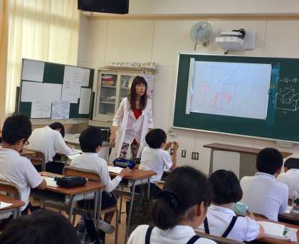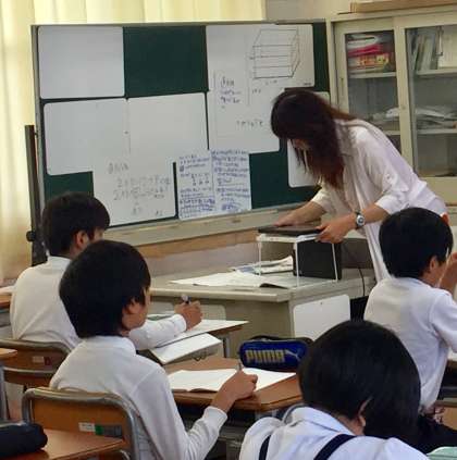 本校では、授業中における児童の学習への興味関心を高め、理解を深めるために、タブレットを日々有効活用しています。児童自身が書いたノートを拡大投影し、児童の考えを生かしながら授業を進めています。