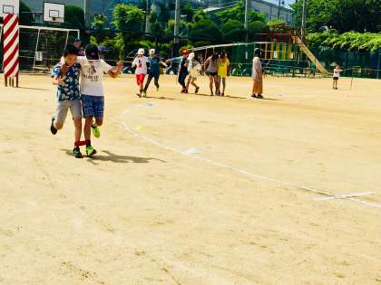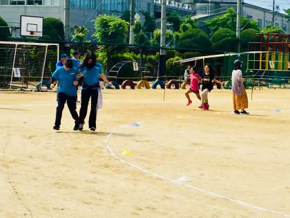 本校卒業生の教育実習生もがんばっています。子どもたち、接戦しています。