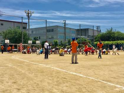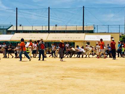 いつも地域で子どもたちの見守りをしてくださっている方々にも参加していただき、紅白対抗の綱引きをしました。大正区役所のこども・教育担当の方も綱引きの応援をしてくださっていました。