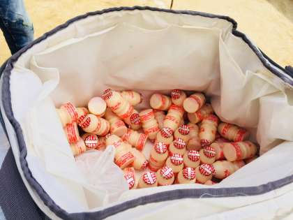 早飲み用のドリンクは、直前までクーラーボックスで冷やしてくださっています。本校、体育主任も楽しんでいます。