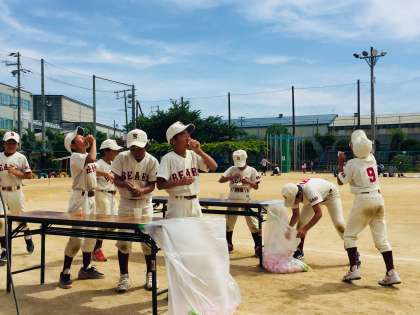 未就学児童も一緒に楽しんでいます。三東ベアーズ(野球チーム)、迫力があります。