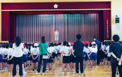今日の児童朝会では、校長先生から、昨日のコミュニティ運動会では地域の方々に大変お世話になったことに感謝し、また感謝の気持ちを伝えることが大切であるとの話がありました。