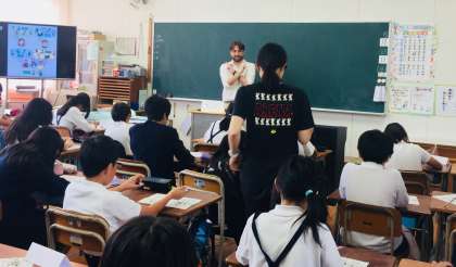 「I can 〜.」 C-NETのJohn先生の英語活動の様子です。