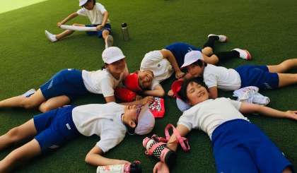 運動会の練習の後、のびのび広場で仲良く休憩していました。
