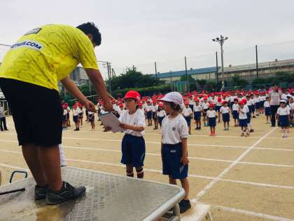 参加賞は、代表の1年生が当日はPTAの方からいただきますが、今日は体育主任の先生からいただきました。