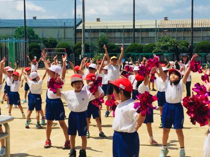 今日も全校でPEタイム【ラジオ体操】に取り組みました。一つひとつの動きを大きくのびのびと体操することをめざしています。