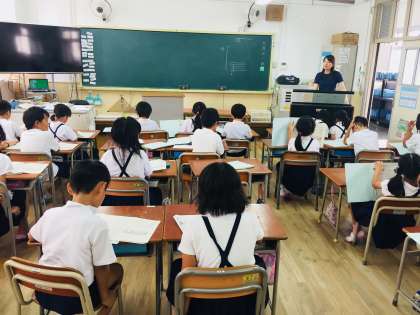 6月21日(木)の全校音楽集会に向けて、各学級、取り組んでいます。2年1組では、メロディーの確認をしていました。