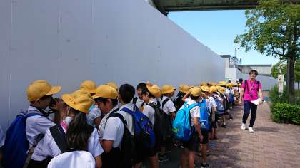 今日は、4年生が、舞洲の焼却場に社会見学に行きます。