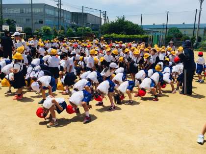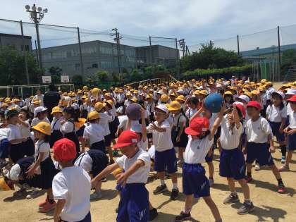 今日からボールの送り方が変わりました。行きは、頭上で送り、かえりは足の間から送ります。工夫して、素早く送っていました。