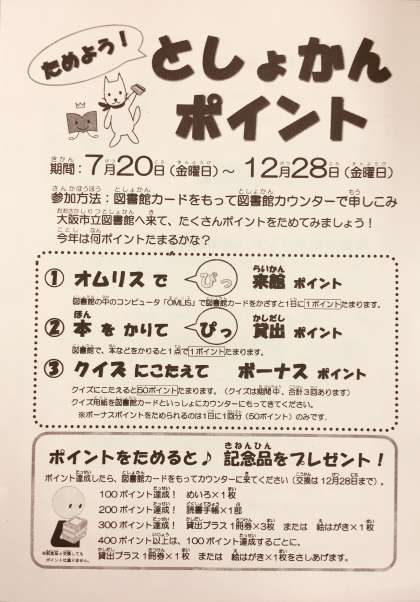 大正図書館の館長さんから、「としょかん ポイント」のお知らせがありました。