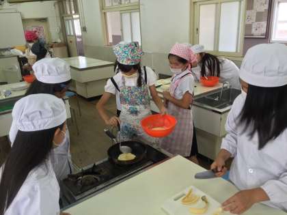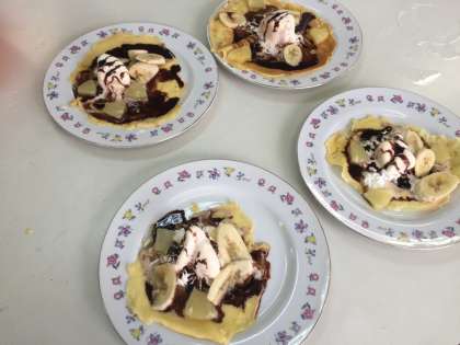 今日は、クッキングクラブで「クレープ」をつくりました。