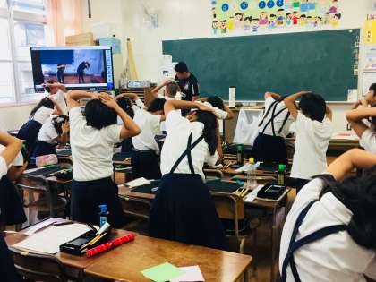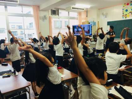 今日は雨が降っていたので、PEタイムは教室で、「姿勢体操」をしました。大きく伸びをして、柔軟性を高めています。毎日、たったの5分ですが、毎日しっかりと運動をすることで、成果が出てきています。