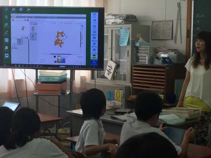 今日は、6年1組で「Scratch(スクラッチ)」を使って、プログラミングをしました。
