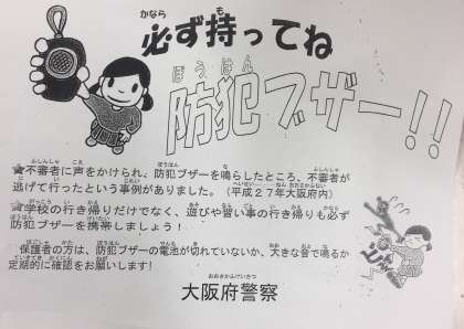 保護者の方は、防犯ブザーの電池が切れていないか、大きな音が鳴るかなど、定期的に確認をお願いします。