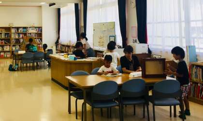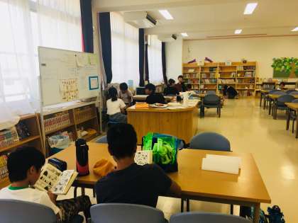 今日は、学校図書館補助員さんが図書館開放をしてくださいました。プール開放の時間の前後に、図書館を活用している児童がいました。