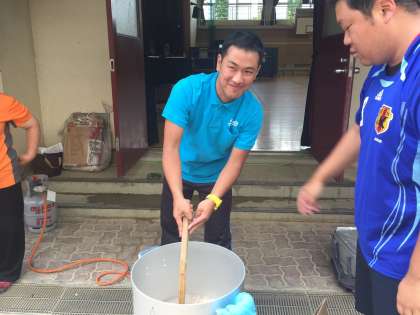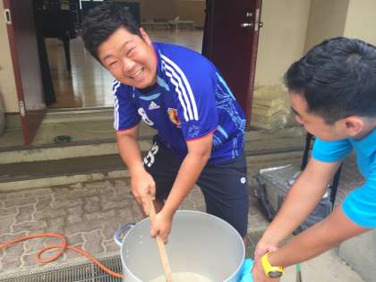 先生たちも、子どもたちのために、カレー作りをしています。