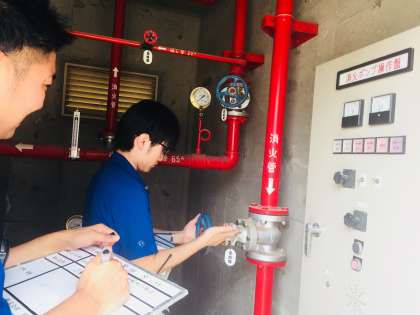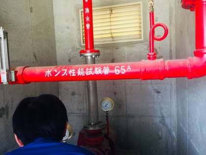 業者さんに来ていただき、消防設備点検をしていただいています。