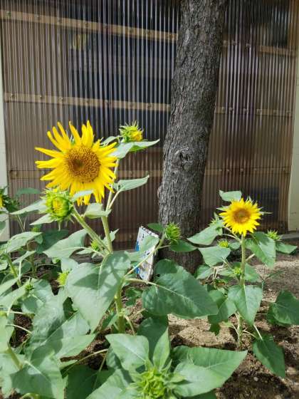 「いきいきガーデン」のミニひまわりが咲き始めました。
