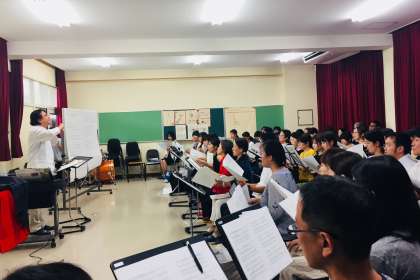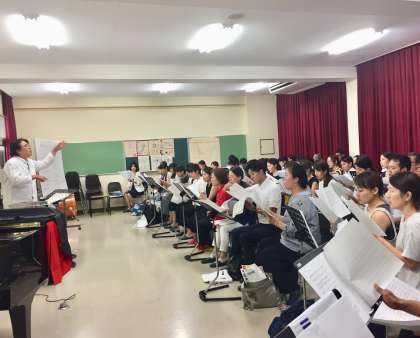 小学校音楽教育連盟 音楽実技研修会を行いました。もとNHK東京児童合唱団常任指揮者の加藤 洋朗さんから指導法を学んでいます。