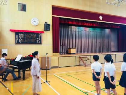 二学期の始業式を行いました。大阪市歌と校歌を斉唱しました。