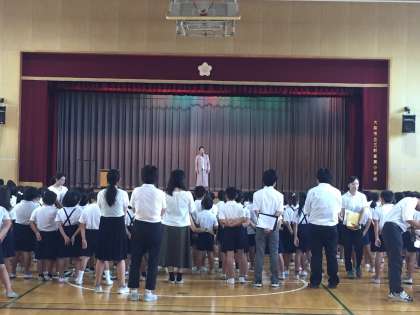 校長先生から、二学期の自分の目標を立てることと、二学期も「しっかりと勉強をしよう」「友達と仲良くしよう」「元気にあいさつをしよう」という目標を大切にしましょうという内容のお話がありました。