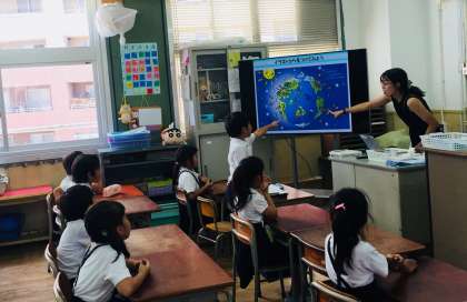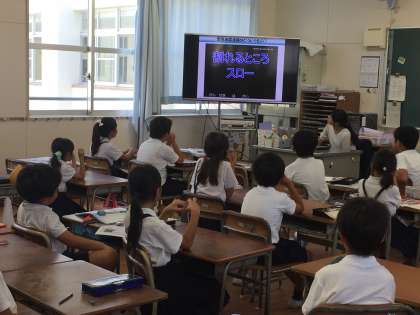 土曜授業として全学級、「防災訓練」の公開授業を行いました。気象庁が作ったパワーポイントの教材を活用した授業の様子です。