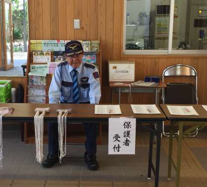 受付の様子です。安全確保の為、警備員さんが受付をしてくださっています。