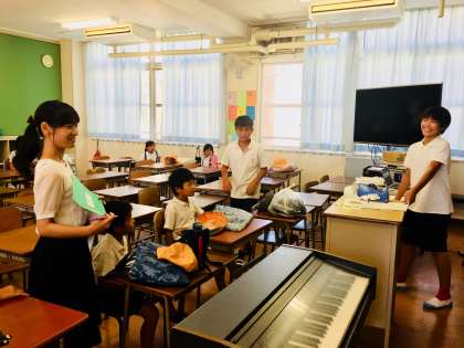 引き渡し訓練の様子です。児童のリーダーが活躍しています。
