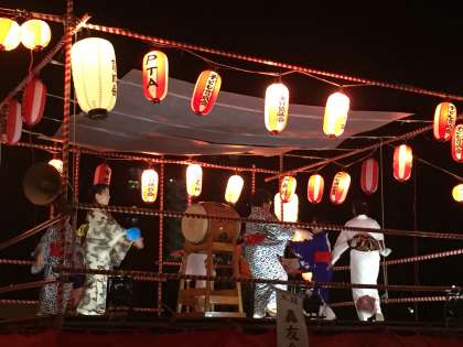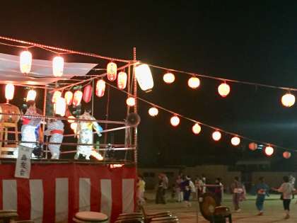 盆踊りの様子です。校長先生もやぐらの上で河内音頭を踊られています。