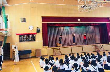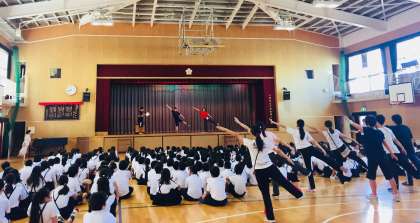 今日の児童朝会で、二学期のPEタイムについての説明(模範)がありました。ヨガを取り入れて、体幹バランスをトレーニングします。