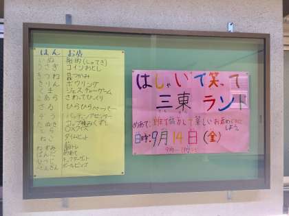 今日の5時間目のたてわり活動では、9月14日に行う三東ランドの「お店づくり」についての話し合いをしました。