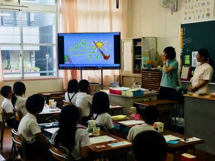 今日の三東タイムはEnglishをしました。新しい場面をしました。