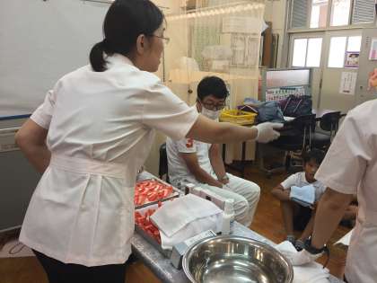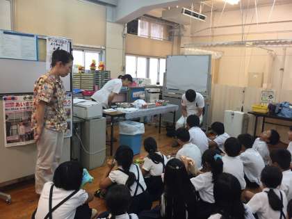 むし歯予防の一環として、大阪市教育委員会と大阪市学校歯科医師会の共催により、4年生児童にフッ化物塗布をしていただきました。