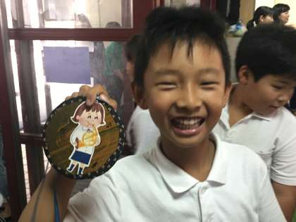楽器クイズをしてくださいました。クイズに答えて、中学生から参加賞をもらった児童は、嬉しそうでした。