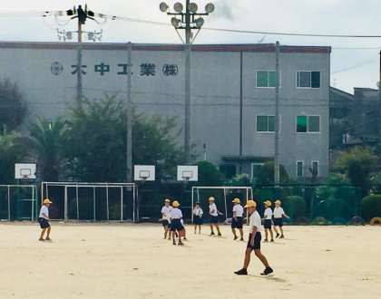 放送委員会が朝の放送で、「外で元気に遊びましょう」と呼びかけていました。始業前の時間も、児童は運動場で元気に遊んでいます。